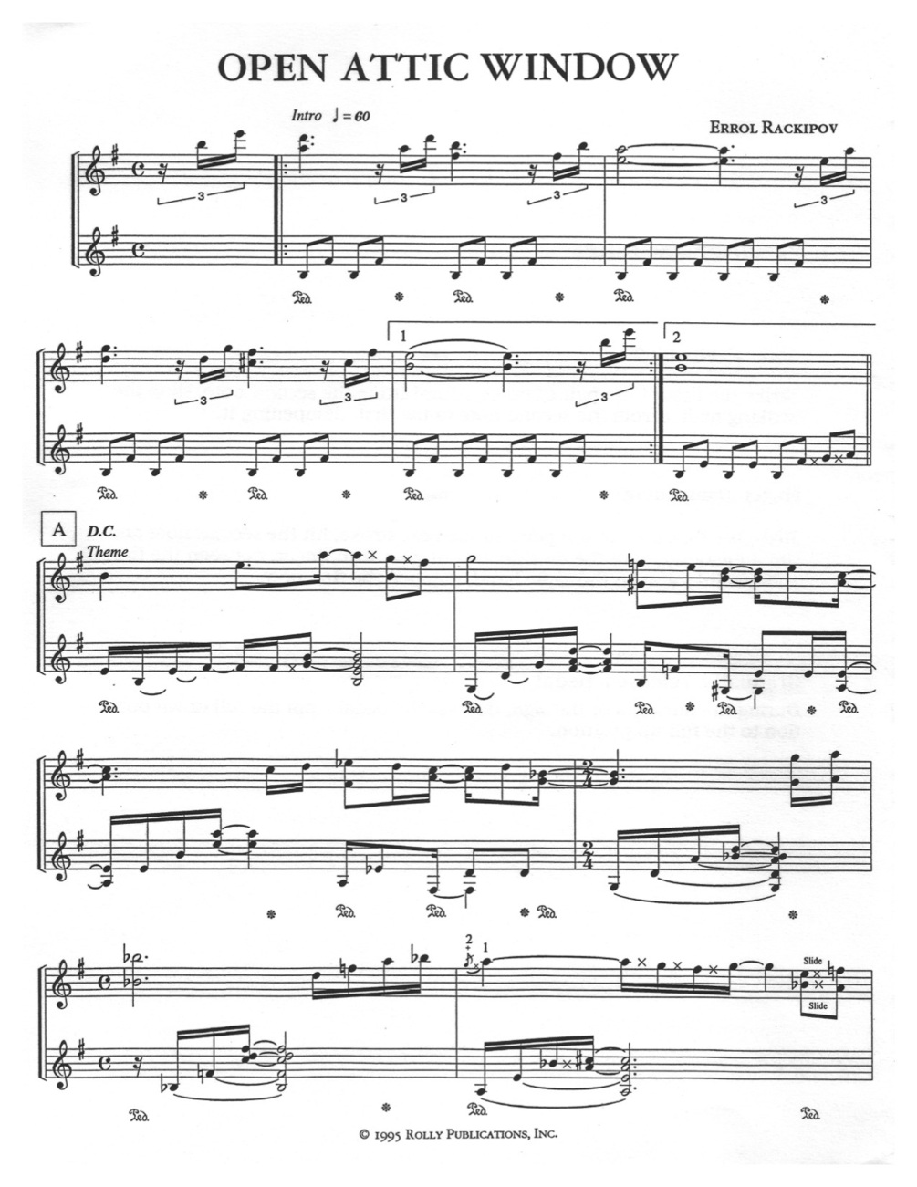 An original composition by Errol Rackipov for solo vibraphone. The piece consists of a melody and a written improvisation. The composition is intended for advanced 4 mallet performers.